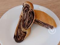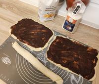 Megismételjük az előzőeket a tészta és a kakaós töltelék másik felével is. A két rudat süthetjük egymás mellett. Sütés előtt lekenhetjük a tetejét növényi tejjel.